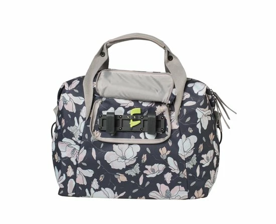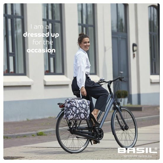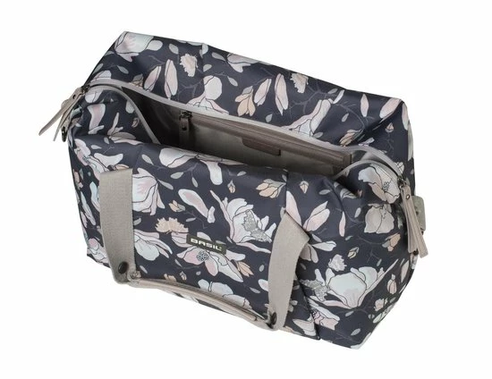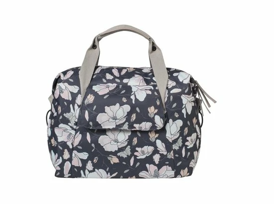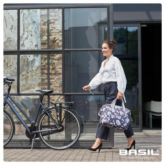 De Basil Magnolia Carry All Bag is een enkele fietshandtas in donkerblauw. Hij is voorzien van een leuke bloemenprint en is daarom vooral geschikt voor een damesfiets. Ga je altijd met de fiets naar je werk of naar school, en kan je wel een praktische tas gebruiken om je spullen te vervoeren? Dan komt deze handige fietshandtas wellicht goed van pas. Je maakt hem eenvoudig vast aan je bagagedrager dankzij het Hook On-systeem. En je neemt hem er ook gemakkelijk weer af. De tas is gemaakt van waterafstotend materiaal. Bovendien krijg je een regenhoes meegeleverd bij je aankoop, waardoor ook de tas met inhoud droog blijft. Verder is de tas voorzien van een stevige binnenvoering en een handige ritssluiting. En dankzij de hengsels draag je de tas in je handen of gewoon over je schouder. Wel zo praktisch. Dankzij een inhoud van 18 liter kan je flink wat spulletjes vervoeren. Deze fietstas maakt jouw fietsrit niet alleen leuker, maar ook een stuk gemakkelijker. Zoek je naast een nieuwe fietstas ook bijbehorende fietsaccessoires? Je treft ze elders aan op de website. Eigenschappen: De Basil Magnolia Carry All Bag is een fietsschoudertas met een totale inhoud van 18 liter. Dankzij de meegeleverde regenhoes is de tas gemakkelijk waterdicht af te sluiten. De fietstas monteer je eenvoudig aan de bagagedrager van je fiets of je maakt gebruik van de handige schouderriem. De reflectiedetails zorgen ervoor dat je ook in het donker goed zichtbaar bent. Perfect voor een E-bike.
