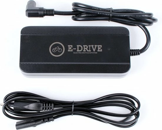 Batterij-lader voor het opladen van Li-Ion accu’s van Vogue fietsen met een tulp-stekker aansluiting, zie foto’s. Met laad-indicatie LED en 4-traps-laadkarakteristiek.