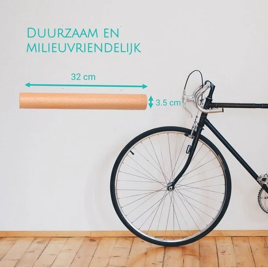 Wil je je fiets ophangen aan de muur, maar vind je een traditioneel ophangsysteem niet mooi? Dan hebben wij een oplossing voor jou! Met deze massief beukenhouten palen van het merk &ERGY? hang je je fiets op een elegante manier op. In je slaapkamer, woonkamer, garage of elders in huis. Uiteraard ook te gebruiken om andere spullen in huis op te hangen, zoals bijvoorbeeld ’n ladder.