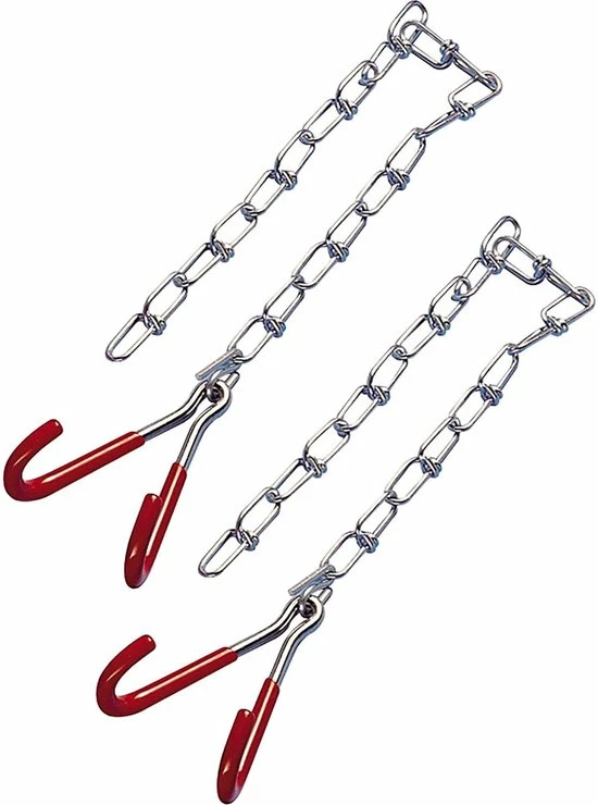 Deze ophanghaken met ketting zijn bedoeld voor reparatie en onderhoud aan jouw fiets. De rubberen hoezen om de haken geven bescherming tegen krassen op jouw fiets.