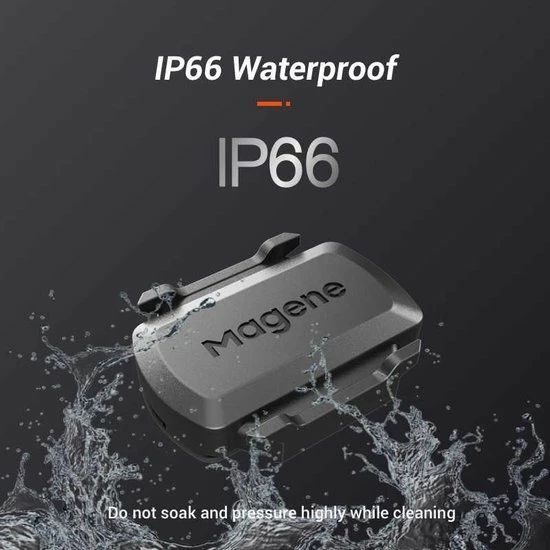 De Speed/cadanssensor van Magene is IP66 waterdicht waardoor je de sensor ook in de meest heftige regenbui of modderrit kunt gebruiken zonder dat de sensor zijn functie en verbinding verliest tijdens je fietsrit over de weg of in het bos.