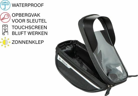 Door de waterproof transparante PVC-laag en de zonnebeschermingskap is uw smartphone beschermd tegen alle weersomstandigheden, zoals regen, wind en de zon.