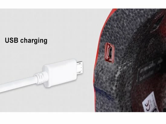 De helm is voorzien van een accu, die 2000 mAh tot zijn beschikking heeft wanneer vol. De accu is op te laden door het bijgeleverde micro-usb kabeltje. het voorlicht kan tot wel 24 uur meegaan en het achterlicht zal rond de 350 uur meegaan voordat de accu leeg is (afhankelijk van de stand).