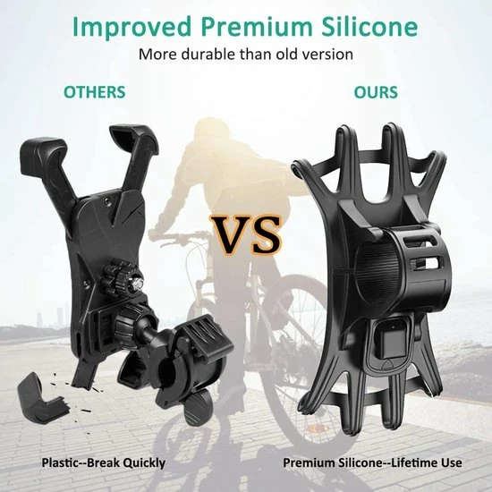 ✦ Stevig en veilig: gemaakt van hoogwaardig siliconen, flexibel siliconen absorbeert alle schokken in tegenstelling tot plastic bevestigingen die er zijn. Siliconen elastische banden binden je telefoon stevig aan de fiets, zelfs op een hobbelige weg