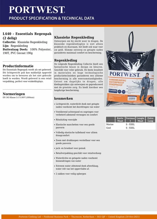 Nieuw ? Portwest Regenpak 2 Delig Donker Blauw Maat XL ?