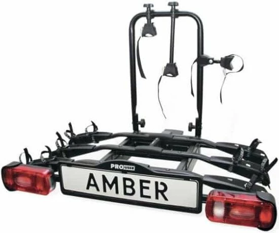 Deze Pro-User Amber III Fietsendrager is een lichtgewicht en kantelbare fietsendrager voor het transport van 3 fietsen. Deze fietsendrager is eenvoudig op de trekhaak te plaatsen door de gepatenteerde snelkoppeling. Op de Amber III worden fietsen stevig bevestigd in brede, stabiele kunststof wielhouders en er is geen belasting op het crankstel van de fiets door middel van framebevestiging. De verlichting werkt via een gecombineerde 7/13-polige (Jaeger) stekker, incl. mistachterlicht en achteruitrijverlichting (via 13-polige stekker.)