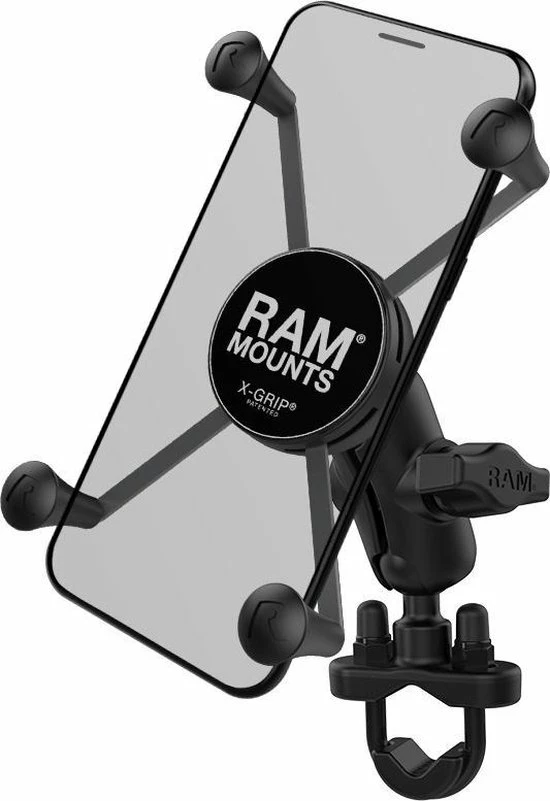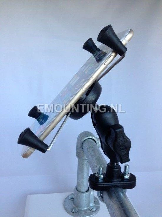 Bevestig je iPhone met deze smartphone houder voor de fiets of motor. Flexibele stangbevestiging en X-Grip UN10B houder o.a. geschikt voor iPhone Plus voor fiets, motor, rolstoel, golfcart.