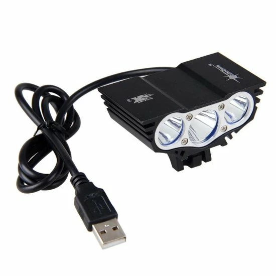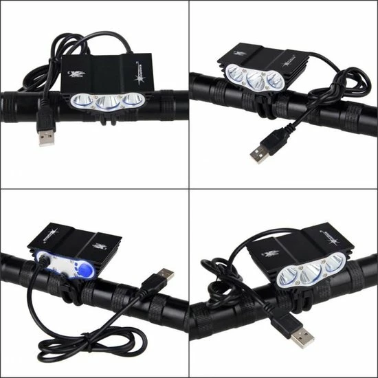 3x CREE T6 LED koplamp voor MTB/race met USB aansluiting – 3600 Lumen