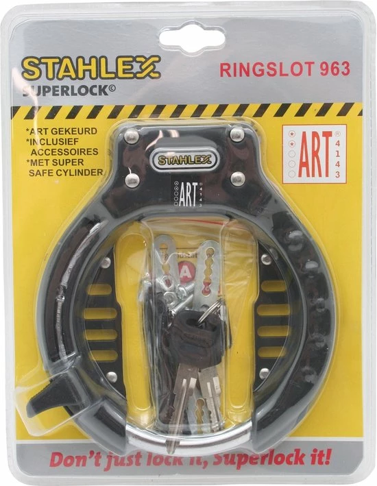 Ringslot van Stahlex Geschikt voor vaste bevestiging op uw fiets, Wordt geleverd met bevestigings materiaal. Het slot opent u met een sleutel
