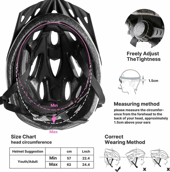 - Geschikt voor hoofdomtrek: 57-62CM