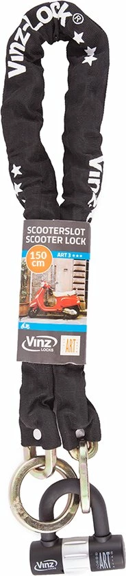Het VINZ Kungur kettingslot leent zich uitstekend om je scooter of bromfiets te beveiligen tegen diefstal. De loop aan het uiteinde geeft de ketting meer reikwijdte. Dit is erg handig als het slot om een vast object wordt vastgemaakt zoals een lantaarnpaal of hek. Het slot van VINZ is ART 3 goedgekeurd en is gemaakt van gehard staal. Daarnaast is het slot ook te gebruiken als schijfremslot. Erg handig en functioneel! Het slot is naast scooterslot ook goedgekeurd als bootslot. Al met al kan worden gezegd dat dit een zeer multifunctioneel slot is.
