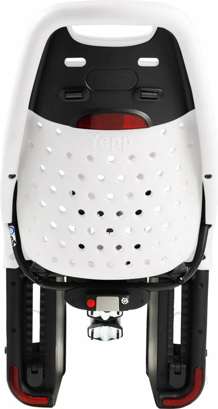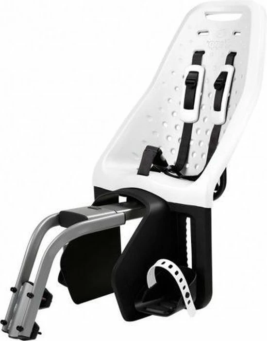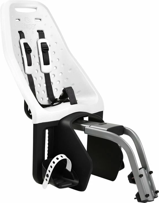 De Thule Yepp Maxi Frame Mount White is een fietszitje dat ontworpen is voor achterop de fiets door middel van een zadelbuisbevestiging. Dit zitje is te gebruiken vanaf 9 maanden tot 6 jaar en tot 22 kg. Het is een slim en functioneel zitje met persoonlijkheid voor dagelijks gebruik en kan makkelijk bevestigd worden aan de frame van uw fiets. De Thule Yepp Maxi FM biedt maximaal comfort door de zachte en schokabsorberende zitting en heeft een veilige en goede pasvorm dankzij de verstelbare, vijfpuntsgordel met zachte schouderpads. Ook gemak en flexibiliteit zijn verzekerd naarmate het kind groter wordt dankzij de met ??n hand verstelbare voetsteunen en voetriemen. Ook geeft de ingebouwde reflector en bevestigingspunt voor fietsverlichting u meer veiligheid. Het zitje is makkelijk te reinigen en droog te houden dankzij de waterafstotende materialen van het fietszitje en tevens voorzien van een slot.